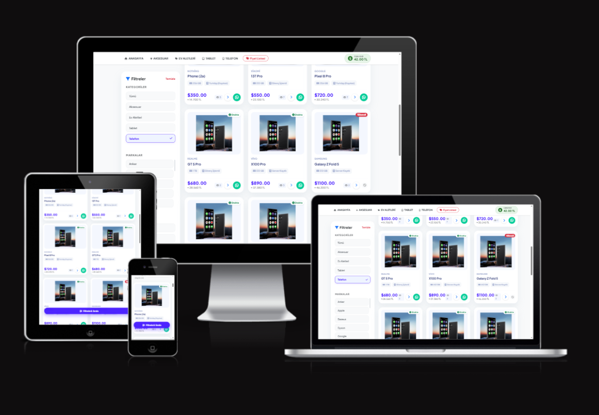 • Responsive Tasarım: Mobil, Tablet ve Masaüstü uyumlu modern arayüz.